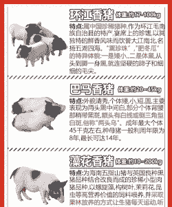 泰国香猪、 日本香猪、 中国台湾香猪:这些是从国外引进的香猪品种,具有生长缓慢、个头不大、花色漂亮等特点。