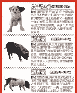 尤卡坦猪(墨西哥无毛猪):有较大的品种可以长到180斤以上,小的只有平均45-90斤,平均身高40-61厘米。