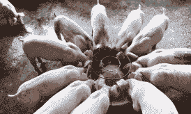 逐渐增加用量早期饲喂教槽料时,添加量仅够3小时的量,避免浪费和饲料变质。