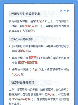 扶持补贴:养殖500-3000只蛋鸡可申请补贴2-5万元。