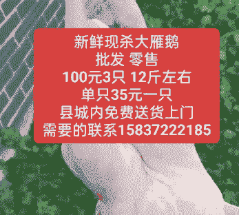 山东临沂老鹅肥鹅70-85天:10.3-11.3元/斤,宰杀后:6.0-6.9元/斤,120天以上:8.5-9.3元/斤,11.5-12.8元/斤。