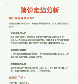 这些数据表明,云南省的生猪价格在16.5元/公斤至18.8元/公斤之间波动,具体价格取决于不同区域和猪的品种(外三元、内三元、土杂猪)。建议关注当地市场动态,以获取最新的价格信息。