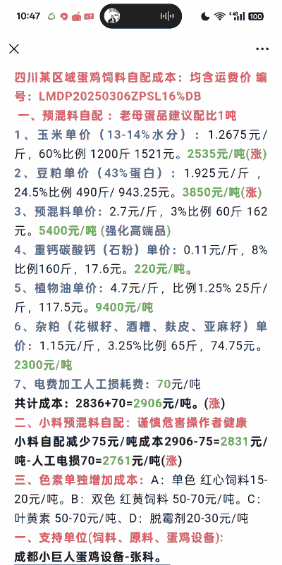 其他参考正规鸡饲料:约2.5元每斤