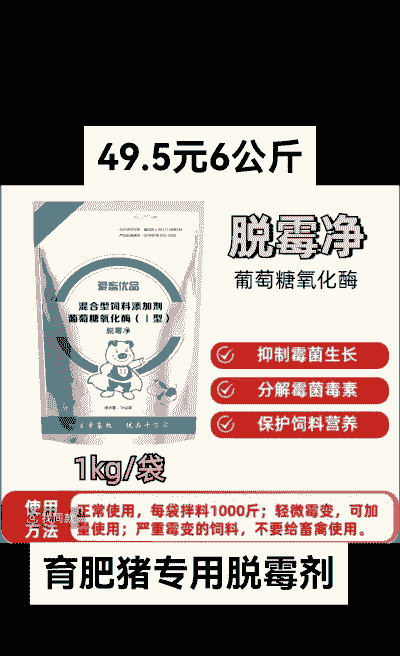 迅销脱霉净兽用饲料脱霉剂价格:1000克/袋,1包价