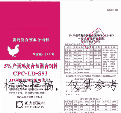5%产蛋鸡复合预混料、9953维生素预混合饲料等。