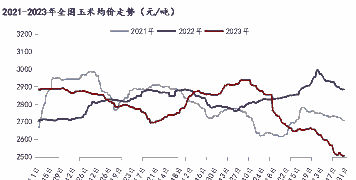 2023年2023年,玉米价格震荡下跌,主要由于玉米增产丰收、替代谷物充足、进口不减以及需求偏弱。