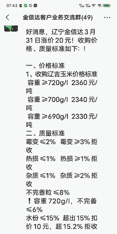 锦州港的玉米价格有所下跌,适合采购容重690-720、水分15的新粮。