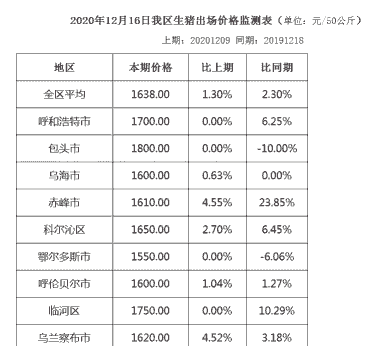 内蒙古不同地区的猪肉价格存在一定差异,呼和浩特赛罕区的价格最高,鄂尔多斯东胜区的价格相对较低。