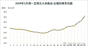 2025年1月5日,昆明市外三元生猪交易价格为15.6元/公斤,为近一个月来的价格高位。