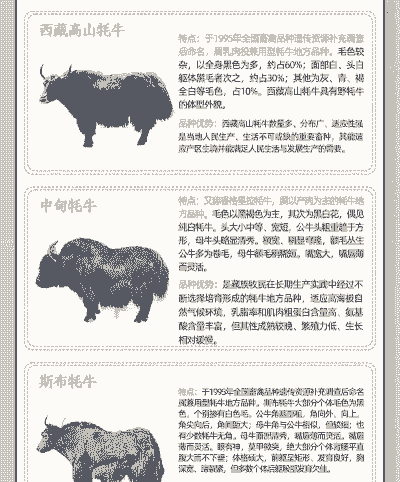 海福特牛:海福特牛是世界上最早的肉牛品种之一,以其早熟、生长快、肉质好而受到青睐。海福特牛适应性强,耐粗饲,是理想的肉牛品种。