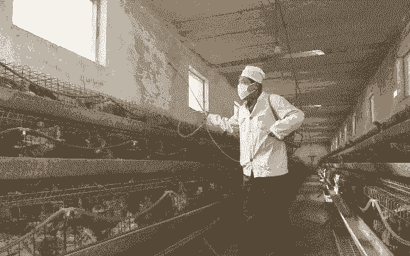 按比例稀释后,喷洒在鸡舍环境中,可以用于墙面、地面、设备等的消毒。