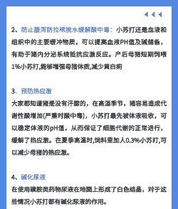 预防热应激:小苏打进入猪体后,分解产生的二氧化碳随呼吸排出体外,有助于猪体散热降温,从而预防中暑。