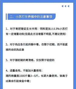 综上所述,小苏打喂猪在促进猪的生长发育、提高饲料利用率、预防疾病等方面具有显著效果。在使用小苏打时,应注意适量添加,避免过量使用导致猪体酸碱平衡失调。