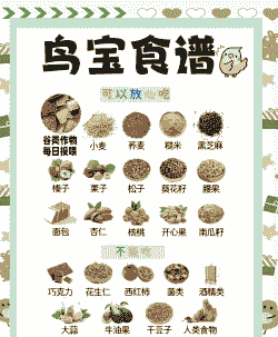 其他粮食:绿豆、黄豆、玉米、高粱米、糙米等,这些粮食中含有丰富的蛋白质、脂肪、维生素和矿物质,有助于小鸟获取全面的营养。