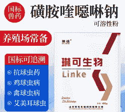 磺胺喹恶啉钠(用于治疗小肠艾美耳球虫,特别是巨型、布氏和堆型等)。