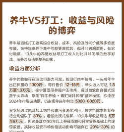 养牛的利润与成本和风险如下: