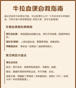 寄生虫某些寄生虫寄生于牛的肠道内,时间一久会造成肠道损伤,导致血便。可以使用驱虫药如伊维菌素注射液或阿苯达唑伊维菌素粉进行驱虫,并使用安胃太保修复受损的胃肠粘膜。