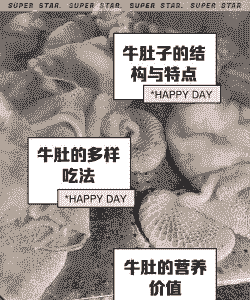 :体积最大,内壁覆盖一层乳状突起,口感韧,适合煮或涮火锅。推荐食用方法:爆炒牛肚、萝卜焖牛杂等。