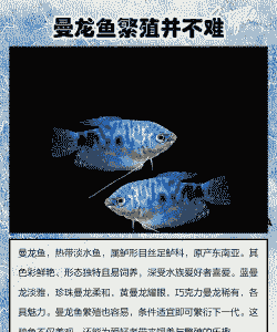繁殖方法:蓝曼龙每窝小鱼苗数量多,繁殖力强,适应能力强。