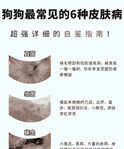 根据狗狗的具体症状,可以初步判断可能的皮肤病类型,并采取相应的治疗措施。建议带狗狗去宠物医院就诊,以便确诊和治疗。