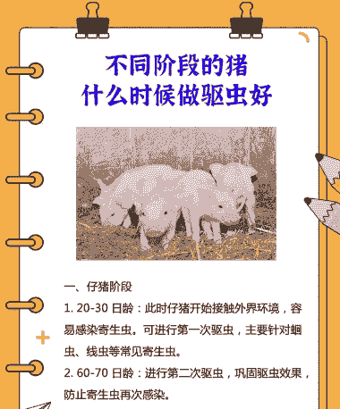 秋季是寄生虫繁殖和传播的高峰期,此时驱虫可以有效地减少寄生虫数量,降低疾病发生率,提高猪的生长性能和饲料利用率。