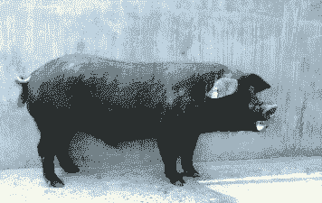 八眉猪:中心产区为陕西泾河流域、甘肃陇东和宁夏的固原地区,头较狭长,耳大下垂,额有纵行“八”字皱纹,被毛黑色。