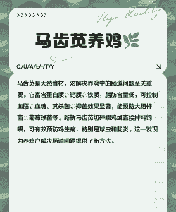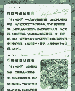 这些草本植物不仅能够提供必要的营养,还可能含有一些天然的抗菌、抗炎成分,有助于维护鸡的健康,减少疾病发生的风险。建议在实际应用中,根据鸡的具体健康状况和饲养环境,选择合适的草类进行喂食,并注意适量和搭配,以达到最佳的防病效果。