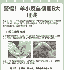 其他症状:病羊还可能出现行动迟缓、无力、站不稳等症状,严重病例可见坏死病灶波及齿龈、腭、颊部及其头、舌头等处。