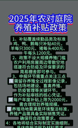 建议养殖户及时了解当地的具体补贴政策和申请条件,以便顺利享受到国家提供的各项扶持政策。