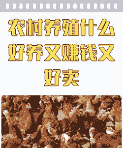 猪:猪是杂食类动物,适应力强,繁殖快,适合农村养殖。可以选择养肉鸡或蛋鸡,通过售卖肉或蛋赚钱。
