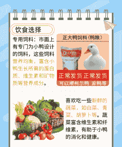 饮水:确保小鸭子随时有清洁的饮用水,可以加入适量的葡萄糖和维生素C以帮助消化和增强免疫力。