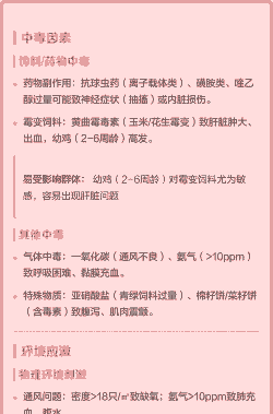 中毒霉菌中毒:由于饲料或环境中存在霉菌毒素,鸡只摄入后可能中毒死亡。
