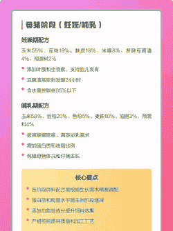 母猪料:在配种前期、妊娠期和哺乳期间,母猪需要高蛋白质和高能量的饲料,以维持身体状况和提高繁殖能力。饲料中需要添加多维太保、母畜太保、旺乳太保等,以满足母猪在配种前期、妊娠期和哺乳期的营养需求。