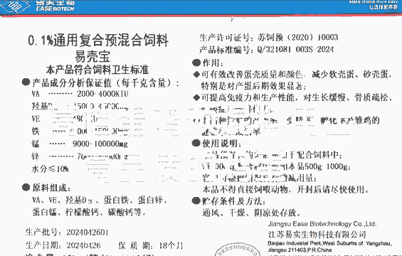 载体:用于承载和均匀混合上述微量成分,常用的载体包括粗小麦粉、麸皮、稻壳粉、玉米芯粉、石灰石粉等。