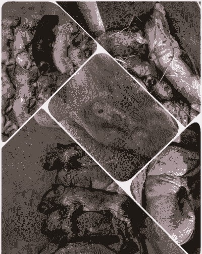 红色死胎原因:通常是由于蓝耳病引起的。