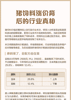 原材料价格上涨玉米:作为饲料的主要成分,玉米价格的上涨直接推动了饲料成本的增加。此外,其他原料如大豆、鱼粉等价格的波动也会影响饲料成本。