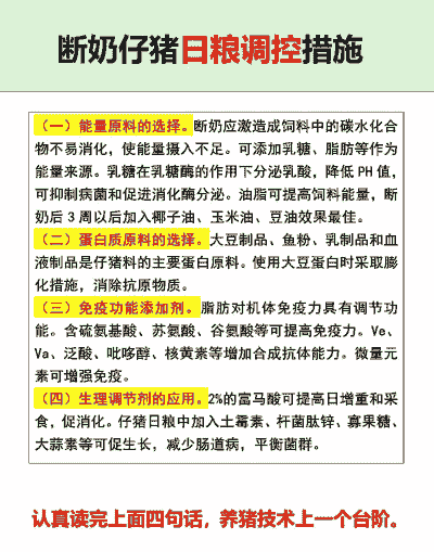 调整饲料配比:根据仔猪的生长阶段和体重,适时调整饲料的配比,以达到最佳生长效果。