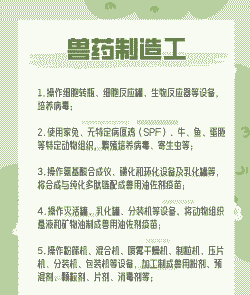 动物药品生产与管理:包括兽药的生产、制造、质量控制、残留检测等。