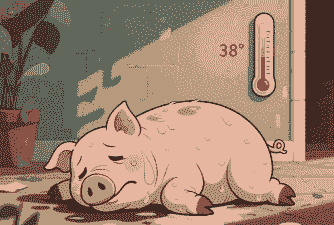 体温升高:猪在应激状态下,体温可能会迅速升高至43~45℃,并可能伴有皮肤潮红、紫斑、黏膜发绀等症状。