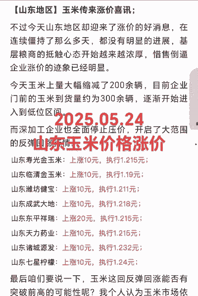 这些数据表明,山东玉米市场整体价格较为稳定,部分企业价格略有上涨。建议关注市场动态,以便及时获取最新的价格信息。