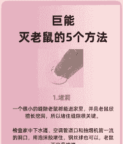 这些物理捕鼠工具放置在老鼠经常出没的地方,如墙角、家具缝隙等,定期检查捕鼠工具,及时清理和处理捕获的老鼠。