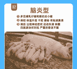 猪传染性脑脊髓炎由病毒科肠道病毒属引起,侵害中枢神经系统,引起感觉过敏、震颤、肌肉抽搐和肢体麻痹。