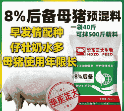 小牧侠饲料-4%后备母猪预混料配合60%玉米、18%豆粕、18%麸皮。