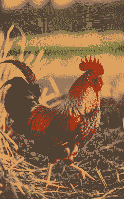 公鸡在采食高峰时,自然光照下,采食高峰在日出后2-3小时,日落前2-3小时,栖于林中,常至田野间觅食植物种子、嫩芽、谷物等,兼吃虫类及其他小形动物。在繁殖季节,公鸡会展示其鲜艳的羽毛以吸引母鸡。