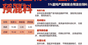 建议选择合适的预混料:根据蛋鸡的不同生长阶段选择合适的预混料,以保证营养的均衡和充足。