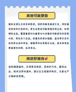湿度不适:猪舍湿度过高或过低,影响猪的皮肤健康。