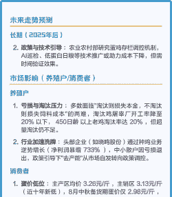 政策调控政府措施:为了稳定市场供应和价格,政府采取了一系列措施来调控养殖业。例如,加强对养殖场的监管和检查,提高养殖门槛和环保要求等。这些政策的实施虽然有利于行业的长期发展,但在短期内也导致了一些养殖户的退出和产能的减少。