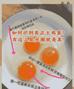 洋鸡蛋:蛋白颜色较淡,蛋黄颜色较深,蛋黄与蛋白界限不太明显,蛋白膜较薄,容易破裂。