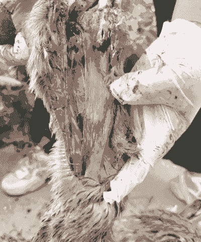 腹泻和泄殖腔问题:排出绿色或灰白色稀粪,泄殖腔充血、水肿,严重者粘膜外翻,粘膜面有黄绿色的假膜且不易剥离。