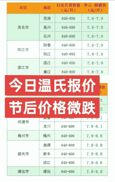 山东、河南、江苏、安徽等地区价格相对稳定,可以关注这些地区的市场变化和温氏在这些区域的销售策略。